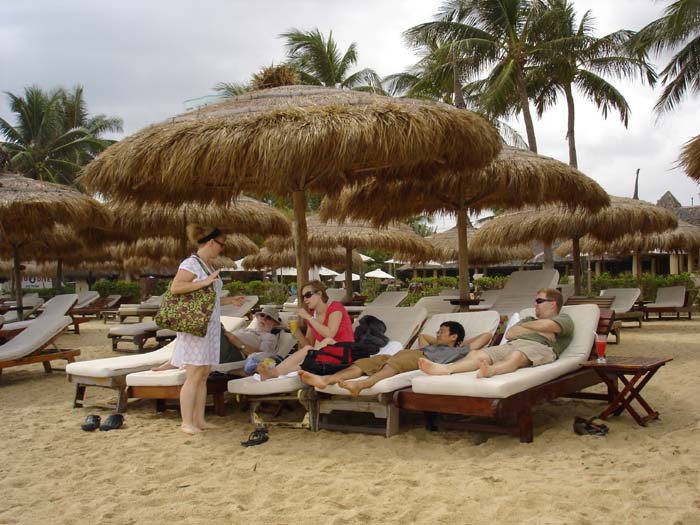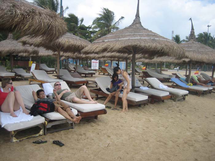 Although I understand that Nha Trang offers anything from island-hopping boat trips and scuba diving, to mud baths and historic sites - what attracted us was lounging around on deckchairs at the Louisiane Brewhouse, a café on the ocean beach where we could get a nice home brewed pilsner beer, eat good food and lounge comfortably on the ocean beach. Some of us spent most of our time at this pub where we could meet others who have come here from all over the world.