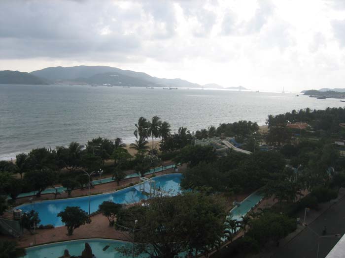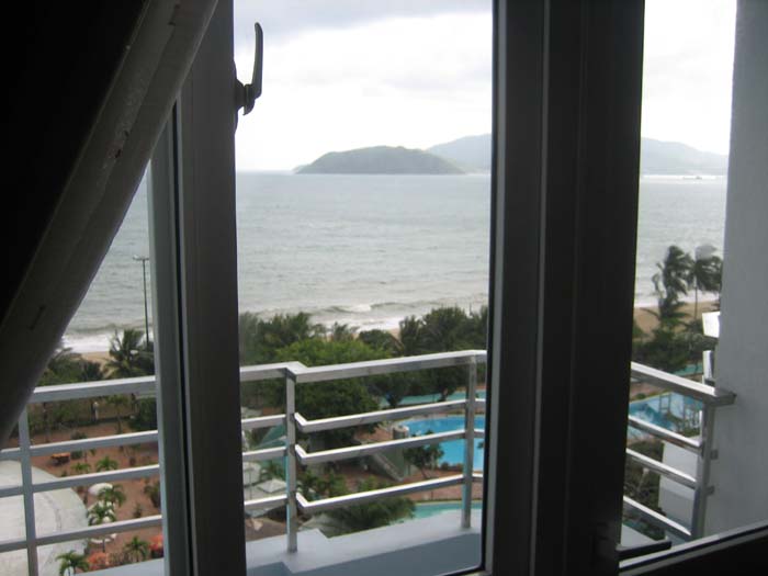 Nha Trang offered Ramona and I a little bit of extra luxury. We opted to rent a hotel room on an upper floor overlooking the ocean from our private balcony. We had a king size bed, a Jacuzzi bath, a table with four comfortable chairs. All this cost us a whopping $40. (four times what our neighborhood hotel room costs)